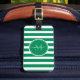 Modern Grönt och Vita Rand Monogram Namn Bagagebricka