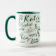 modern grönt om vit handskriven namn mugg