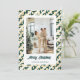 Grönt och vitt, randigt fotopilkort med grönt och vitt foto ram med stjärnor och modern teckensnittstyp. Anpassa enkelt det här festive-fotokortet med ditt foto och en namn-familj.