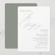 Enkelt modern bröllopsinbjudan i grönt och vitt. Den unika handskrivna kalligrafin ge ser ut som en chic. Om du behöver hjälp kan du kontakta mig (Maria) med hjälp av kontaktknappen nedan för ytterligare färg eller delar.