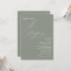 Enkelt modern bröllopsinbjudan i grönt och vitt. Den unika handskrivna kalligrafin ge ser ut som en chic. På baksidan lägger du till dina uppgifter om bröllop och osa qr-kod för att hjälpa dig med spara pengar om du behöver hjälp, kontakta mig (Maria) med hjälp av kontaktknappen nedan om du behöver hjälp.