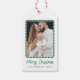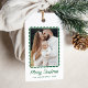Lägg till en snygg avslutande beröring i dina helgdag med de här moderna märkrna med fotopresenter som innehåller lodrät som ramas in i en grönt vattenfärgsskalopad gräns på en vit bakgrund. "God jul" visas i ett handskript för grönt, där familjen namn och året visas nedan för en personlig. Ett snyggt sätt att klä ut Julklapp, helgdag favors och säsong presentemballering.