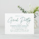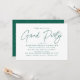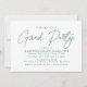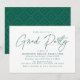 inbjudningskort för roligt och modern studentfest som innehåller "Grad Party" i ett skript för grönt av trendig med information om studentfesten som visas nedan. Den enkla studentfesten inbjudan går tillbaka till visningen en söt grönt och ett vitt, prickat geometriskt mönster.