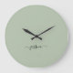 Modern klocka med bakgrunden till grönten och ett handskript med svart gips namn. Anpassa med ditt namn