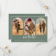Det här enkla moderna bröllop spara datum-kortet i sage-grönt är perfekt för att dela med sig av de bra nyheterna om ditt kommande bröllop till gästerna i bröllop. Det minimalistiska stil har tre ljusa ramar-foton av bruden och trimmen på framsidan med ord "spara datumet" i ett modernt typsnitt. På baksidan finns det plats för ytterligare ett foto som du vill ha mer information om bröllop, inklusive webbplatsen för bröllop.
