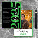 Det moderna och minimala tillkännagivandet i studenten är ett påstående genom att kombinera svart och vitt med kalkgrönt. Det är en minimal design som är enkel och roligt för att fira student stora händelse. Baksidan visningar ditt student favoritfoto. Skapat av Farmhouse Press.