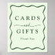 Lägg till en snyggt vid bröllop, möhippa, babydusch, studentfest eller annan speciell händelse med den här moderna Grönten Vågigt Ram-kort och presentkort. Utformningen av "Kort och gåvor" i fetstil med grönt omgiven av en grönt vågigt att gräns kontrasterar mot en ljust grönt bakgrund. Anpassa tecknet för styrkort och presentationer med anpassningsbarna nedan. Välj mellan utskriftsalternativ för professionell eller alternativ för omedelbar nedladdning, vilket ger dig möjlighet att göra det enkelt.