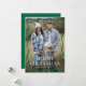 Fira årstiden med det här trendiget, ett modernt julkort som innehåller ditt fullt-blekta lodrät-foto med en snyggt grönt som vågigt gräns. "God jul" står i fet vit stil och namn visas nedan. I baksidan visas ytterligare två foton av vågrät på en solid grönt med subtila snö-liknande punkter, vilket gör att du får en personlig och festlig beröring på dina helgdagar. Perfekt för att dela minnen och sprida glädje!