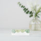 Modern och trendig mini-affärskort med ett överst gräns som består av vattenfärgssubkutenter i grönten överst och ditt namn i ett mjukt grått-teckensnitt. Baksidan har din kontaktinformation. De här affärskorten är perfekter för skönhetssalon, makeup artist, hudvård, hårstylist, insida designer, yoga-instruktör, evenemangsplanerare eller bloggare.