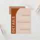 Ett modernt djurutrymmeskort i bröllop som brinner med färg kräm, terracotta och bruna bågformer. Designad med färgstark abstrakt inslag och fet typsnitt ge en funky groovy boho retro vibe perfekt för vår, sommar eller fall bröllop. Även färg i bågformerna kan anpassas.