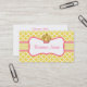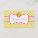 Ett modernt gult och vitt mönster pryder detta gula cupcake-kort. Anpassa detta visitkort för att passa dina behov. Lägg till eller ta bort information, ändra teckensnittsstil, teckenstorlek, etc...Designen är från originalkonst. Använd detta färgglada visitkort för en spa, salong, verksamhet, butik, barnomsorg, etc...