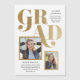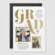 En modern examens inbjudan och underrättelse magnet med en djärv metallisk typ overlay och två foto design.