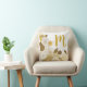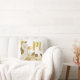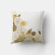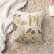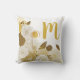 Modern dekorativ kudde med blommigt i guld och vitt och ett anpassade guld monogram. Vit bakgrund