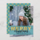 Ett modernt julkort i elegant med isblått gräns och guld-svart skrivmanschetttext på framsidan. Baksidan av Helgdag har snöflingan i glitter hand plockade på isblå bakgrund. Du kan enkelt ändra lodrät med ett eget foto.