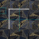 Elegant och triangelkompilering med unika guld-linjer, med en samling trianglar-geometriska former fyllda med olika geometriska mönster, sjöjungfru , styrda, fyrkanter, vågigt snurrar, daisy, chevron zigzag, punkter, i skuggade faux-guld och blå skuggor. Modern, lyxig konsthantverkskonstruktion i guld.