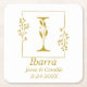 Vacker fyrkantig pappersunderlägg med guld handritad botanisk ram med bokstav I i mitten. Personifiera med parets namn, datum eller annat meddelande.