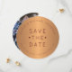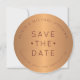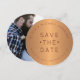 Klassskt glamurous enkelt trendig-typografi bröllop spara datum-fotorunda kort med två små hjärtan på kopparmetallisk glitter bakgrund. ++++++++++++++++ Enkel att anpassa med text och bild på båda sidor! +++++++++++++++ Idealiskt för snyggt formellt glam bröllop. Rekommenderas mest för vinter- eller jularrangemang.