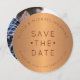 Klassskt glamurous enkelt trendig-typografi bröllop spara datum-fotorunda kort med två små hjärtan på kopparmetallisk glitter bakgrund. ++++++++++++++++ Enkel att anpassa med text och bild på båda sidor! +++++++++++++++ Idealiskt för snyggt formellt glam bröllop. Rekommenderas mest för vinter- eller jularrangemang.