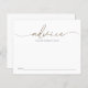 Kortet för babyduschaktivitet har guld moderna kalligrafiskript. Kortet "Råd" uppmanar gästerna att ge råd till föräldrarna när de förbereder sig för baby.