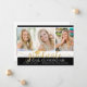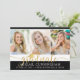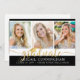 Modern information om fotokollage i studenten med tre bilder på framsidan och 1 på baksidan med modernt kalligrafiskript i guld för kalligrafi för titeln STUDENT accentuerad med en studentmössa och personlig i guld med din student namn, klassår och högskola eller universiteten namn mot en redigerbar svart bakgrund färg (välj en skola färg eller kompletterande färg för dina foton). Baksidan innehåller information om student. ASSISTANS: Om du vill ha hjälp med att ändra eller anpassa designen, överföra designen till en annan produkt eller om du vill samordna produkter, kontaktar du designern INNAN ORDERING via Zazzle Chatta eller makeitaboutyoustore@gmail.com.