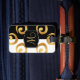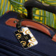 En djärv modern design med guld krymper mönster över en svart och vit bakgrund med anpassningsbar monogram som du kan anpassa med ditt namn, initialer eller annan text. Infoga kontaktinformationen på baksidan av bagagetaggen. Gör en underbar gåva till resenärer.