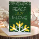 ”Fred, glädje & kärlek.” En stor, rolig, lekfull illustration i guld och vita snöflingor och modern typografi på en rik, djup mörkgrön marmorerad akvarellbakgrund hjälper dig att ta emot högtidsstämningen. En kant med vita och gyllene konfettiprickar ramar in toppen. Din personliga hälsning finns på insidan. Känn värmen och glädjen under högtiderna när du skickar detta fantastiska, grafiska, personliga gratulationskort. Matchande kuvert, klistermärken, presentpåsar, presentpapper, kuddar, underlägg, heminredning och mycket mer finns också tillgängligt. Skicka detta till någon speciell! Skriv bara in hälsningen och namnet/namnen du väljer så kan du enkelt anpassa detta gratulationskort. Vänligen skicka mig