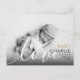 Modern guld foto baby tackkort för att presentera din vackra nyfödda baby. Framsidan visar ett foto av din baby tillsammans med chic guld och svart text för din babys namn och födelseinformation. Baksidan visar ett ytterligare foto av din baby, ditt tackmeddelande, namn och returadress. Designad av Thisisnotme