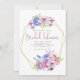 Vänner och familj i inbjudan för att fira den blivande bruden med elegant inbjudningskort för möhippan kort. Med rosa- och blå blommigtar som accentueras med ett modernt guld-geometriskt ram kombineras charm och sofistikering. Personligens händelseinformation i mjuka ro typsnitt gör det till perfekt för romantiska möhippor, trädgårdsodlingar eller blommigtar. Perfekt för möhippa, luncher och firande.
