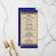 Den här moderna bröllop-menyn har en rik guld glitter-konfetti-effekt på en djup royal blå bakgrund. En klassdesign för alla bröllop-teman. Du kan lägga till din menyinformation genom att klicka på anpassningslänken. Det finns även matchande platskort och bordsnummer-kort längs många fler viktiga