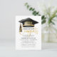 Modern Guld Glitter-skript med minimalistiskt GRAD Cap Tassel Studenten-meddelande vykort. Gratulerar GRAD! Grattisar om deras välförtjänta framgång och fira dem med detta vackra kort. Alla texterna är i förväg ordnade så att du enkelt och snabbt kan anpassa dig med dina egna detaljer.