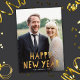 Det nya helgdag-fotokortet innehåller ett fullt-blekt foto och ett festive hälsning i guld-faux-folie som säger "gott nytt år". Det rymmer ett foto i lodrät och skulle fungera bra med färg eller svartvitt. Tips för design: Du kan lägga till ett foto eller flera texter på baksidan.