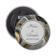 En flaska-öppnare med en abstrakt utformning med ett agate geode mineral mönster. Guld, grått, vit och svart vridning som tillsammans bildar eleganten vågar om färg. En lätt grått-cirkel med ett tunt svart gräns överst lager med texten inuti. Snyggt modern elegans.