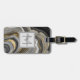 En bagagetagg med en abstrakt utformning med ett agate geode mineral mönster. Guld, grått, vit och svart vridning som tillsammans bildar eleganten vågar om färg. Ett lätt grått-kvadrat med ett tunt svart gräns överst med texten inuti. Perfekt för att förmedla en luft av klass och elegans.