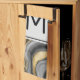 En kökshandduk med en abstrakt utformning med agate geode mineral mönster. Guld, grått, vit och svart vridning som tillsammans bildar eleganten vågar om färg. En lätt grått-kvadrat med ett tunt svart gräns överkant med ett inledande monogram inuti. Perfekt för att förmedla en luft av klass och elegans.