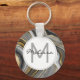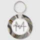 En nyckelkedja med en abstrakt design med ett agate geode mineral mönster. Guld, grått, vit och svart vridning som tillsammans bildar eleganten vågar om färg. En lätt grått-cirkel med ett tunt svart gräns överst lager med ditt namn och monogram invändigt. Perfekt för att förmedla en luft av klass och elegans.