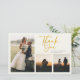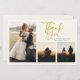 Ett underbart och tankeväckande sätt att tacka dina vänner, familj och medarbetare som gav dig sin närvaro på din bröllopsdag med det här moderna fototacket som du kortar med skript med handskrivet "tack" för guld-effekten Foton på både framsidan och baksidan av detta kort