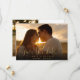 Detta eleganta guld hjärtformade skript foto spara datum-kort har ditt foto och ett skript spara datum ovanför era namn, datum och lokal. Baksidan har ett ytterligare foto och meddelande. Designad av Thisisnotme©