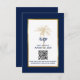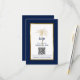 Ge dina gäster svar på din bröllopsinbjudan och utforska din webbplats i bröllop med den här elegantens OSA-informationen och QR-koddesignen med moderna skript, marinblått och guld, inklusive ett konstnärligt ram i handflatan och metallisk guld på kortets framsida. En marin blå bakgrund är på framsidan och baksidan.