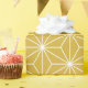 Denna pappra förpackning har ett japanskt geometriskt mönster i vitt och guld. Anpassadet färg är genom att klicka på Redigera design.