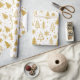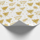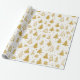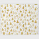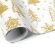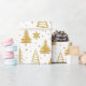 De moderna Guld Julgranar Festive Helgdagars Mönster Wrapping Papper Gift Wrap har en mönster av guldberget Julgranar och snöflingor på vit bakgrund. Perfekt för presenter som täcker in julklappar och helgdag. Skapat av Evco Studio www.zazzle.com/store/evcostudio