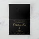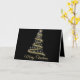 Det moderna julhälsningskortet Black och Guld med elegant guld Julgran med svart bakgrund med guld-text.