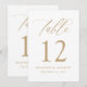 Förhöj din bröllopsdekor med våra snygga bordskort med elegant guldkaligrafi på vit bakgrund. Denna stilrena och moderna design tillför en touch av glamour samtidigt som den är mångsidig för alla bröllopsteman eller säsonger. Personalisera varje kort med era namn och bröllopsdatum för att skapa en minnesvärd och unik detalj som speglar er kärlekshistoria. Perfekta för att guida gästerna till sina platser med stil, dessa bordskort kombinerar sofistikation och funktionalitet sömlöst, vilket gör er speciella dag oförglömlig. Lägg till varje bordnummer i er varukorg för att beställa och gå till kassan när ni är klara.