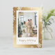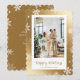 Cute guld snowflake-fotokort för Glad helg med snöflingor på metallisk guld-bakgrund. Anpassa enkelt det här helgdag med foto och text i guld.