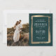 Modern Guld Ram Målerisk Foto Spara datum kortet har en djärv penseldragskant, personligt bröllopsfoto och anpassningsbara namn. Klicka på Redigera-knappen för att anpassa denna design.