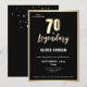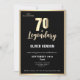 Modern guld metallisk överraskning 70-års inbjudan. Fira en milstolpe med stil med vår eleganta svarta & guld 70-års inbjudan. Med en sofistikerad svart bakgrund prydd med lyxigt guld falsk folie, ger denna design en touch av klass till varje firande. Denna inbjudan är perfekt för att få gästen att känna sig extra speciell. Gör 70-årsdagen oförglömlig med denna tidlösa och chic design!