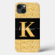Modern Guld Monogram iPhone 13 Fodral Namn, Modern Black Guld Monogram Feminine-skript Namn Telefon, Glitter