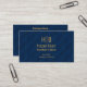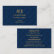 Anpassa och anpassa detta moderna affärskort designat med ett modernt blått minissörer mönster och ett enkelt och minimalistiskt Monogram från Brev Guld på marin blå bakgrund. Presentationskort för dina anställda i professionellen och en öga-tagningsmöjlighet och marknadsföring för ditt företag.