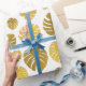 Modern Guld Monstera Tropical Löv Mönster Presentpapper