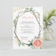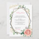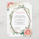 Modern Guld och Rosa Geometric Bröllop är ett inmatningskort. Använda det här kortet för ytterligare bröllop-uppgifter, hotellinformation, anvisningar och mycket mer! Det här anpassadet inbjudan har ett modernt geometriskt ram med faux guld glitter och svart. Gräns är adorberat med grönt, t.ex. eukalyptus, bär och rosa- och krämblommor i ro. Sidorna är förankrade med faux guld glitter. Detta gör ett underbart modernt löv i inbjudan. Sök efter andra inbjudningar till träbröllop på https://www.zazzle.com/oddlotweddings slå bara knappen "anpassa" för ytterligare anpassning.