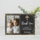 Enkelt, elegant Guld och svart-dödande och baptism tack vare dina kort. Tack till familj och vänner med den här moderna personligen tack för att du religiösor ett platt kort. Den har handskript med bokstäverna "Tack", runt dubbla faux guld foil ram och guld glitter konetti mot svart bakgrund. Det här vackra fototackkortet blir också perfekt för baptism/döpning/namnceremoni/bekräftelse och heligans gemensamma tack för att du kort för pojke eller flicka. 3354